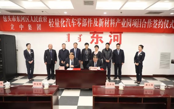 11月27日,公司與包頭市東河區(qū)人民政府舉行總投資5.4億元的輕量化汽車零部件和新材料項(xiàng)目簽約儀式。包頭市副市長王秀蓮,公司董事長臧立國,市政府副秘書長劉清義,區(qū)委書記李世明,區(qū)委副書記、政府區(qū)長賈保良,區(qū)委常委、常務(wù)副區(qū)長徐剛,區(qū)委常委、辦公室主任王林甫出席簽約儀式。